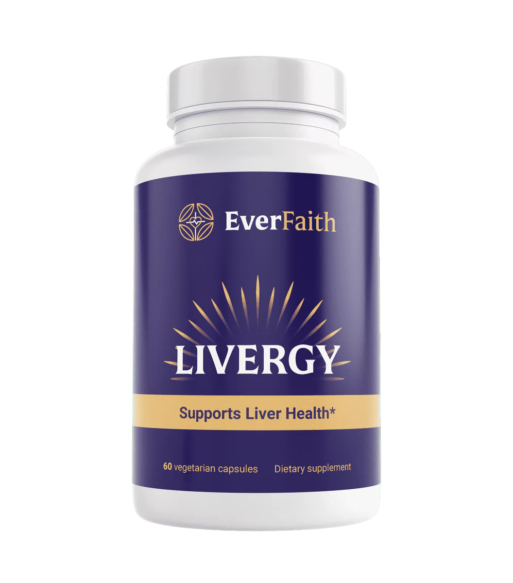 Livergy by EverFaith is a premium liver health supplement designed to support your body's most hardworking organ. The liver performs over 500 essential functions daily, from processing nutrients to eliminating toxins. This natural formula contains nine carefully selected botanicals that work together to optimize liver performance.